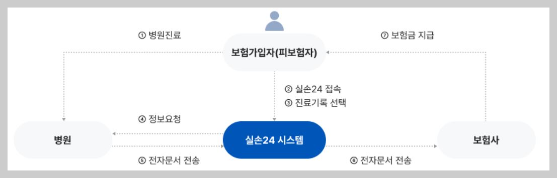 실손24는 소비자가 손쉽게 실손의료보험의 보험금을 청구할 수 있는 서비스입니다.실손24를 통해 병원에서 보험사로 내가 선택한 진료기록을 데이터로 보낼 수 있습니다.이제 병원에서 치료를 받은 즉시, 언제 어디서든 실손24로 실손보험금을 청구해 보세요.여러 개의 실손보험에 가입했을 경우에도 한번에 여러 보험사에 동시에 청구 가능합니다.